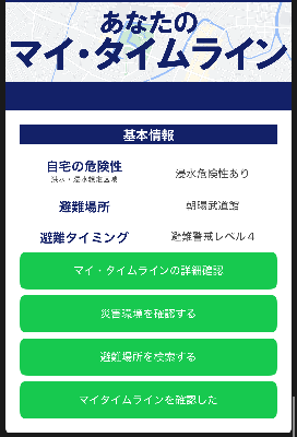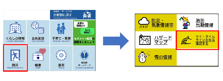「防災メニュー」からデジタル・マイ・タイムラインの作成が可能になります。