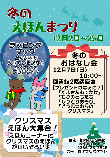 【図書館本館】クリスマスえほんまつり・冬のおはなし会のお知らせ