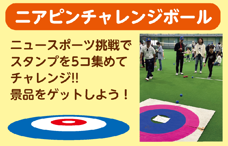 スタンプラリー形式で各種目を回り、「ニアピンチャレンジボール」に挑戦しましょう!