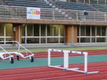 小真木原陸上競技場にハードル(85台)及びハードル運搬車(10台)を購入しました。