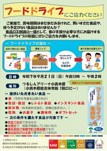 令和7年9月21日(日曜)に開催された環境フェアの中で、賞味期限はまだまだあるけれど、自宅では使わない食品を、食の支援が必要な方にお届けするフードドライブを実施し、合計194点、約207kgの食品をご提供いただきました。