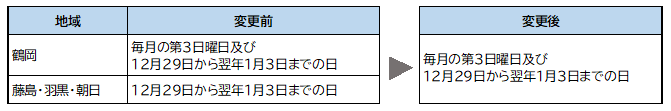 | 鶴岡市朝日中央コミュニティセンター | 〒997-0404 鶴岡市下名川字落合220番地 | 0235-53-3560 |