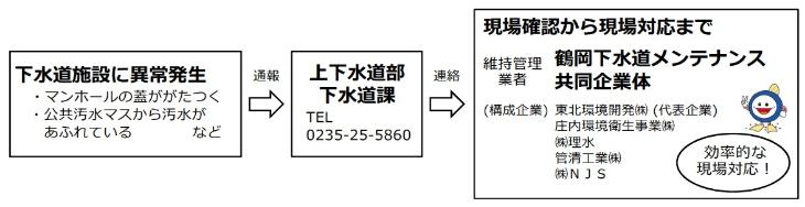 下水道施設に異常が発生した際は、維持管理業者が直接、現場確認から調査・清掃・修繕などの現場対応を行うため、迅速な維持管理を行うことができ、より安定的な下水道サービスを提供することができます。