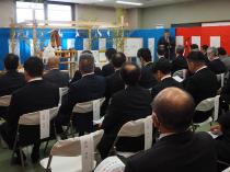 鶴岡市公共下水道汚泥資源化(コンポスト化)事業施設整備の安全祈願祭が鶴岡浄化センター敷地内で開催され、工事関係者、市、関係機関・団体など約30人が出席し、工事の安全が祈願されました。