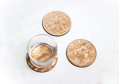 「庄内あつみ杉」の間伐材を利用したマンホールデザインコースターを販売します。