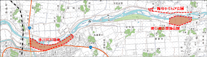 (1)赤川河川緑地 (2)櫛引総合運動公園 (3)櫛引やすらぎ公園