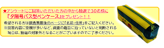 ■その他 ■ アンケートにご回答いただいた方の中から抽選で 30 名様に『 夕陽号バス型ペンケース 』