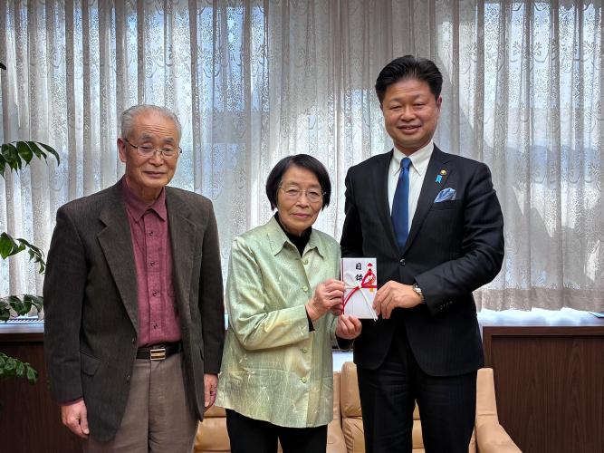 鎮魂と希望の音楽祭実行委員会から寄附をいただきました。寄附金は市の平和活動支援事業などに活用させていただきます。