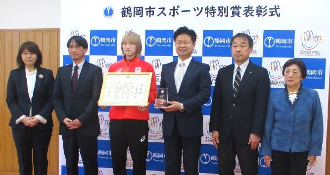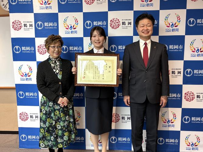 東京2025デフリンピック女子バスケット競技において、日本代表として日本の金メダル獲得に大きく貢献された小鷹実春選手に「鶴岡市スポーツ特別賞」を贈りました。