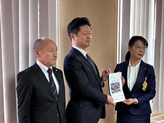 今泉地内で発生した県道法面の土砂崩落について、一日も早い復旧を求めて県へ要望書を提出しました。