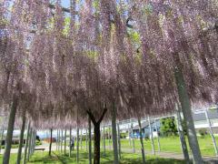平成8年に竣工した藤島体育館の敷地3.4ヘクタール(約10,000坪)に約400メートルの藤棚が設けてあります。