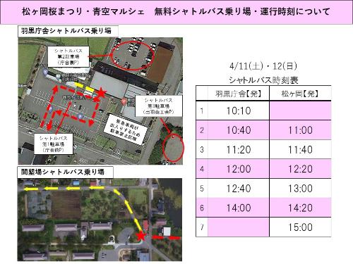 鶴岡市羽黒庁舎から会場までの無料シャトルバスを運行しますので、ご利用ください。