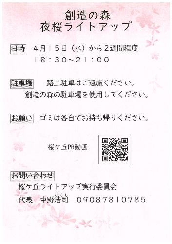 創造の森 夜桜ライトアップのお知らせ